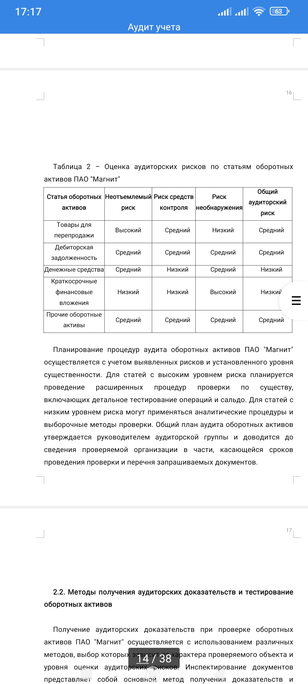 2.2. Методы получения аудиторских доказательств и тестирование оборотных активов 16