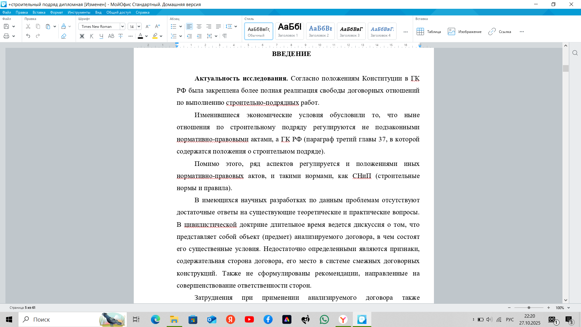 1.2. Договор как основание возникновения отношений в сфере строительного подряда………………………………………………………………………...…..11