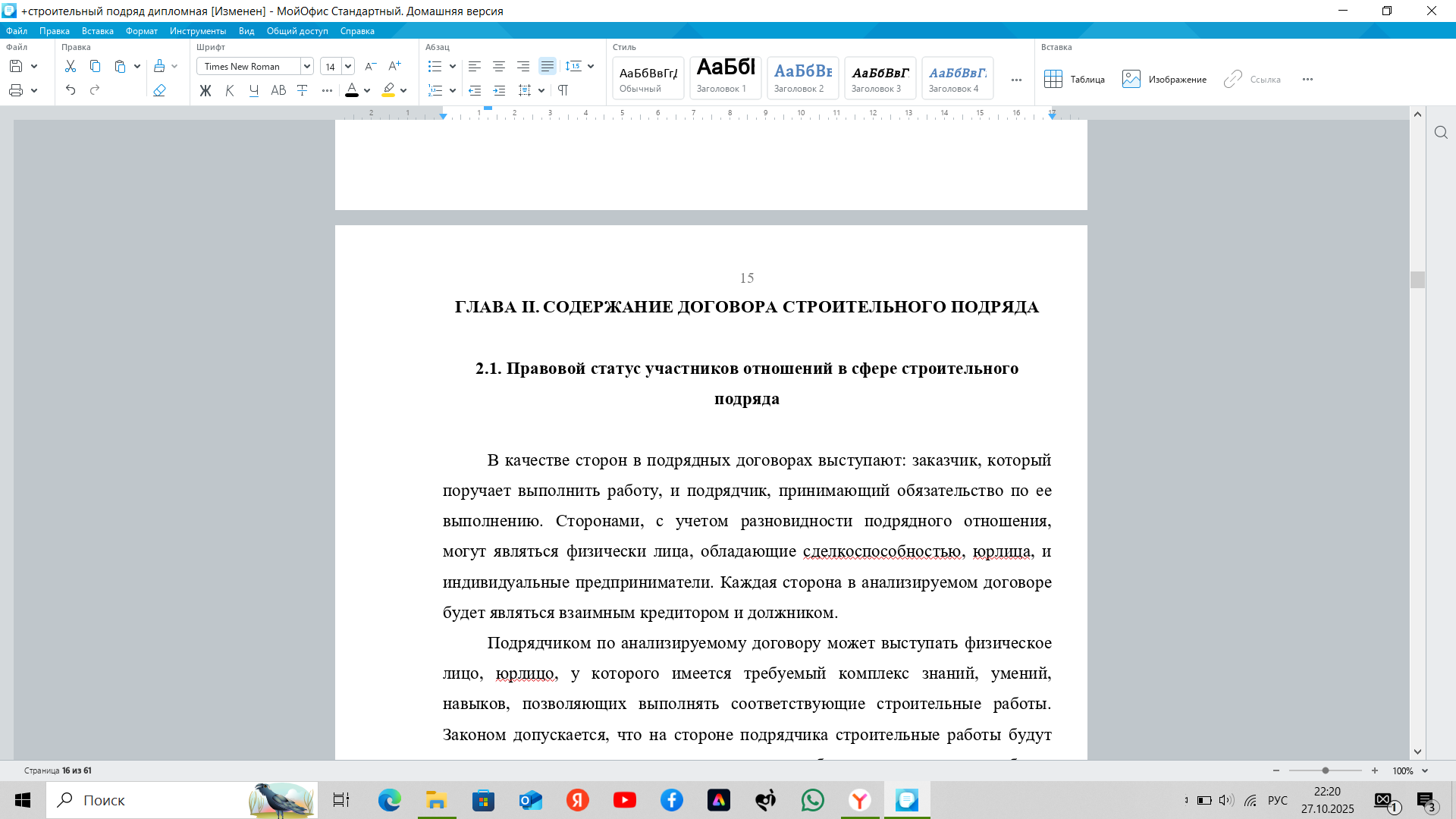 2.1. Правовой статус участников отношений в сфере строительного подряда 15