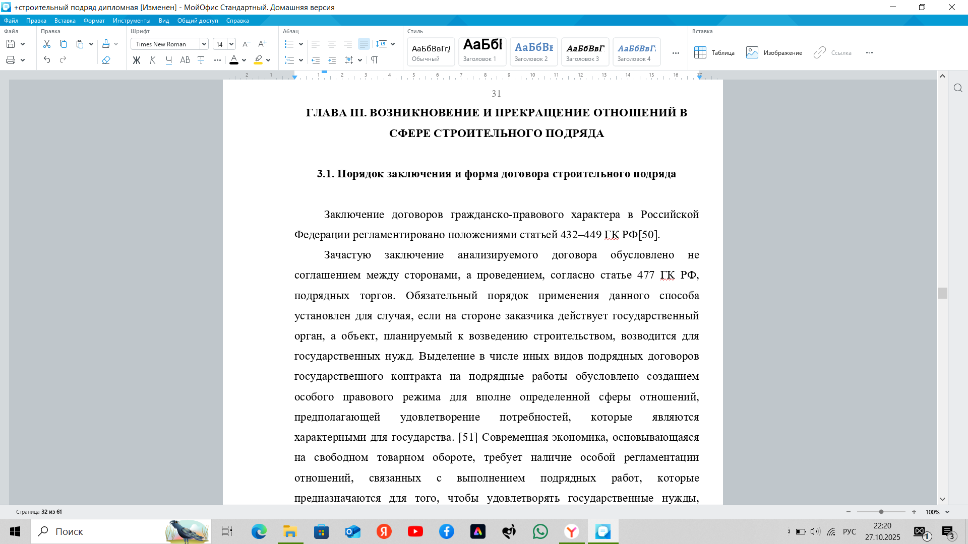3.1. Порядок заключения и форма договора строительного подряда……...............................................................................................................31