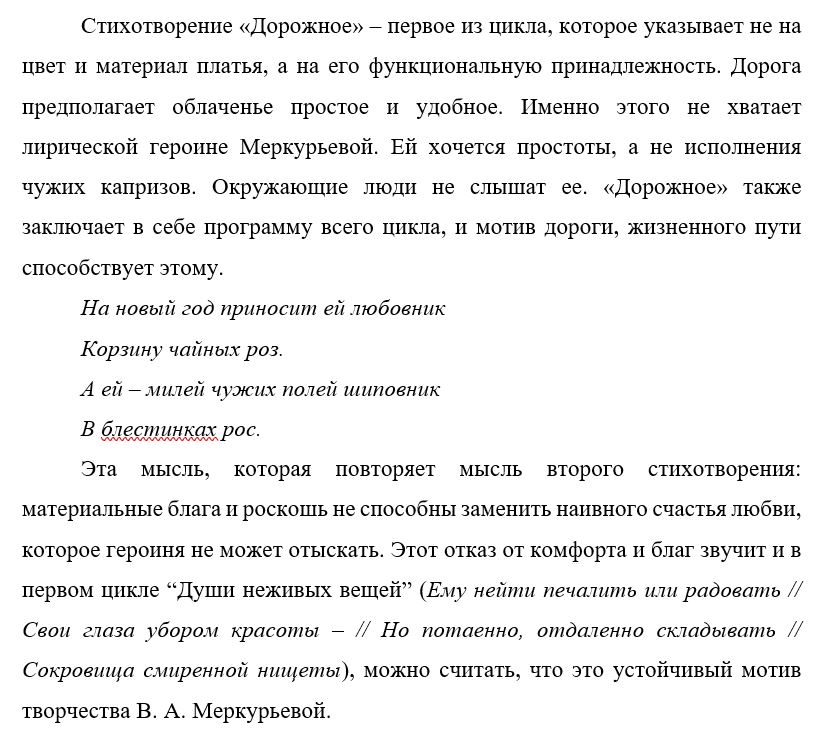 Работа была написана с 83%-ой оригинальностью. Полностью авторский анализ текстов стихотворений В.А. Меркурьевой. Оценка "отлично". Возможность взять материалы для преддипломных статей. Теоретическое исследование написано самостоятельно, без копирайтинга готовых статей.