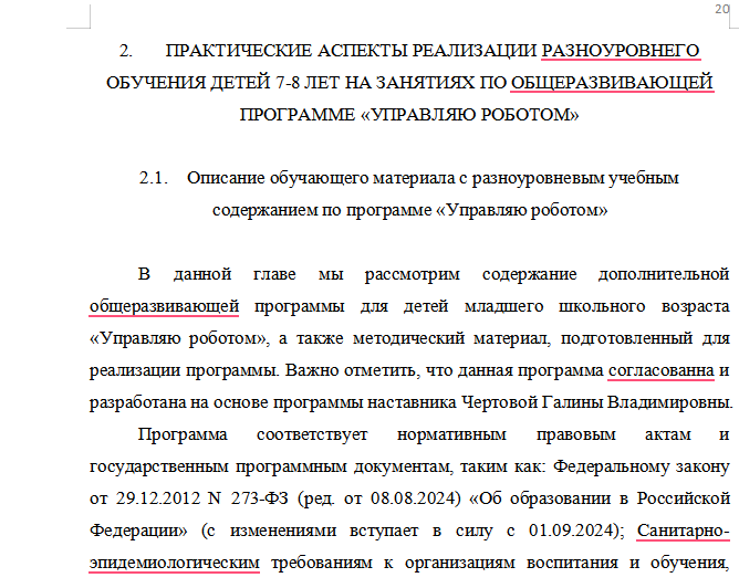 Цель данной работы: определение педагогических условий организации занятий с детьми разного уровня подготовки по программе «Управляю роботом».