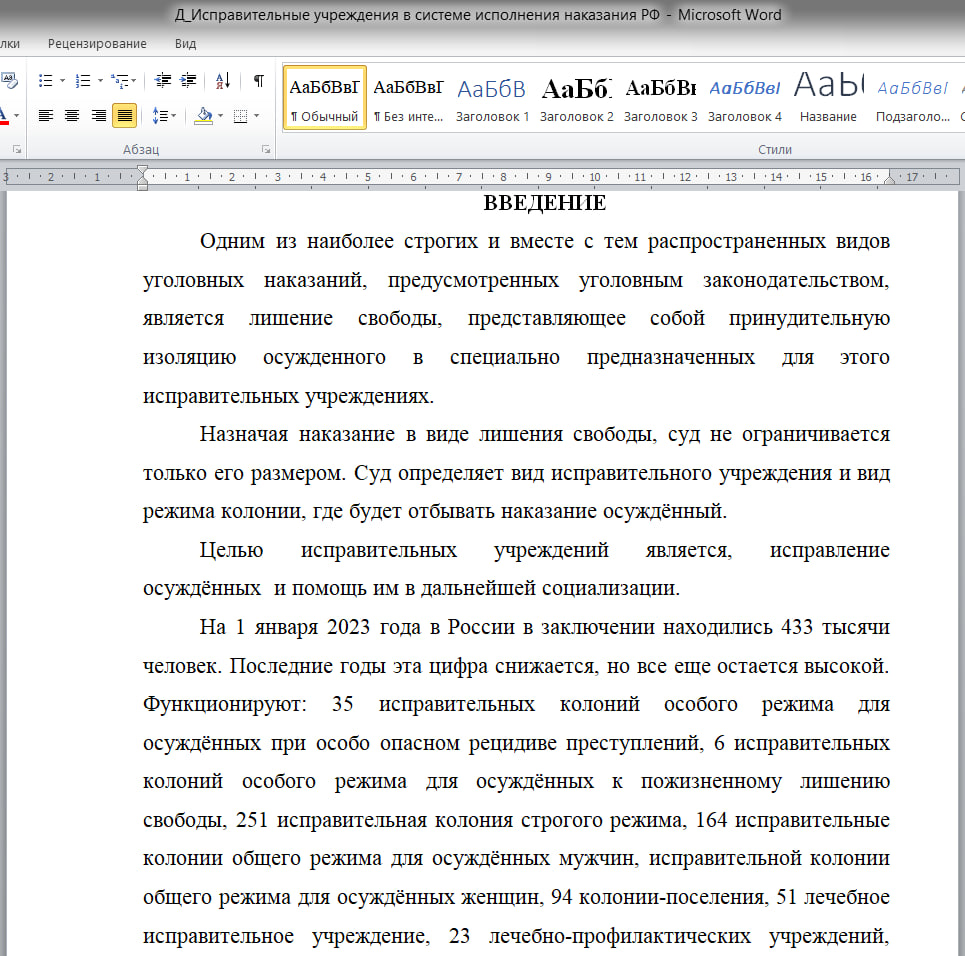 Исправительные учреждения в системе исполнения наказания Российской Федерации