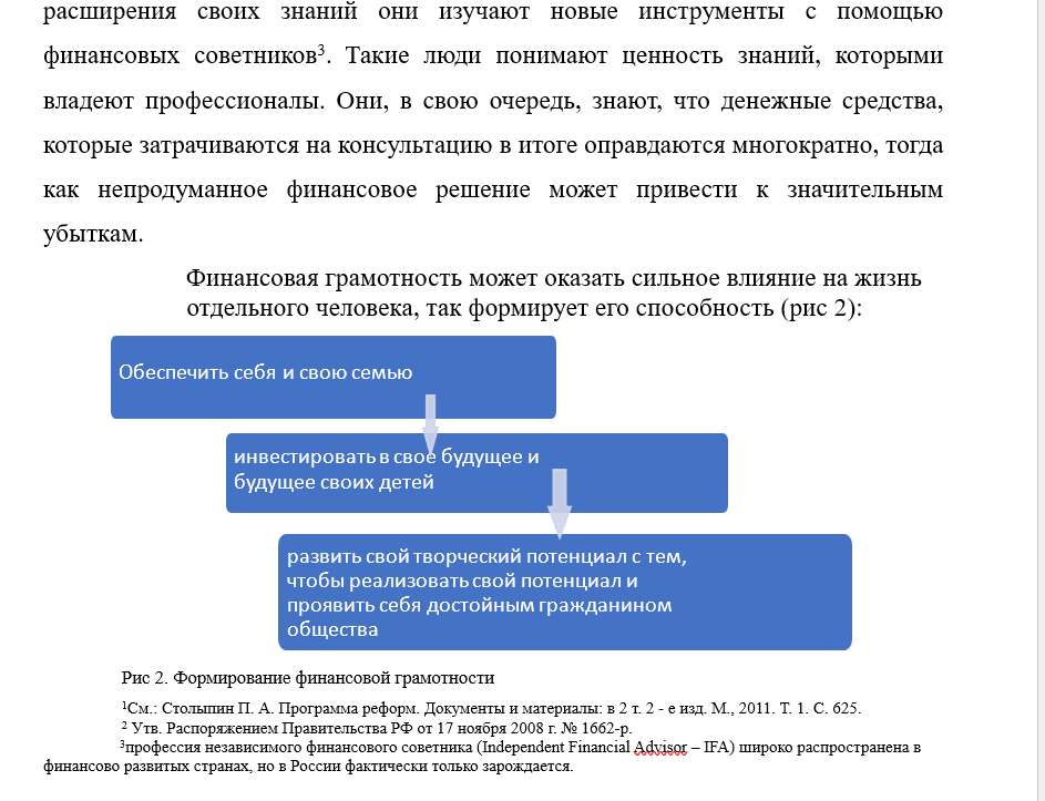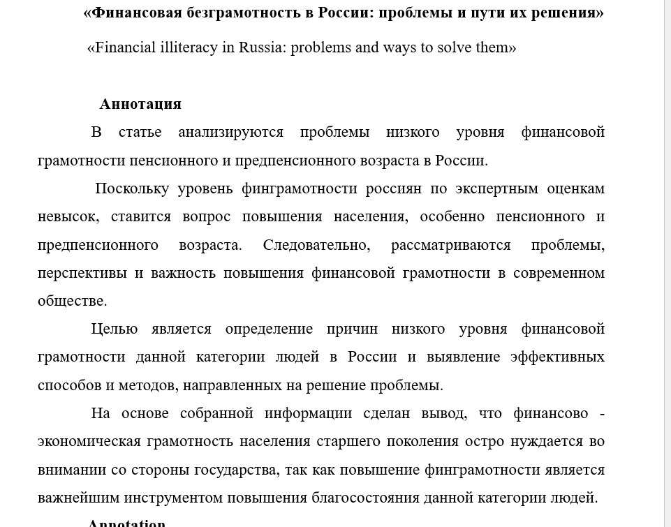 Since the level of literacy of Russians is low according to expert estimates, the question of raising the population, especially retirement and pre-retirement age, is being raised. Consequently, the problems, prospects and importance of improving financial literacy in modern society are considered.