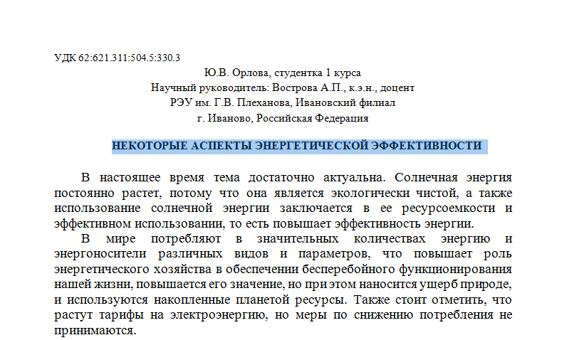 Научная статья на тему "НЕКОТОРЫЕ АСПЕКТЫ ЭНЕРГЕТИЧЕСКОЙ ЭФФЕКТИВНОСТИ". Рассматривается чистая энергия, солнечная энергия. Приведен список использованных источников 2025 г. Оригинальность текста 100%