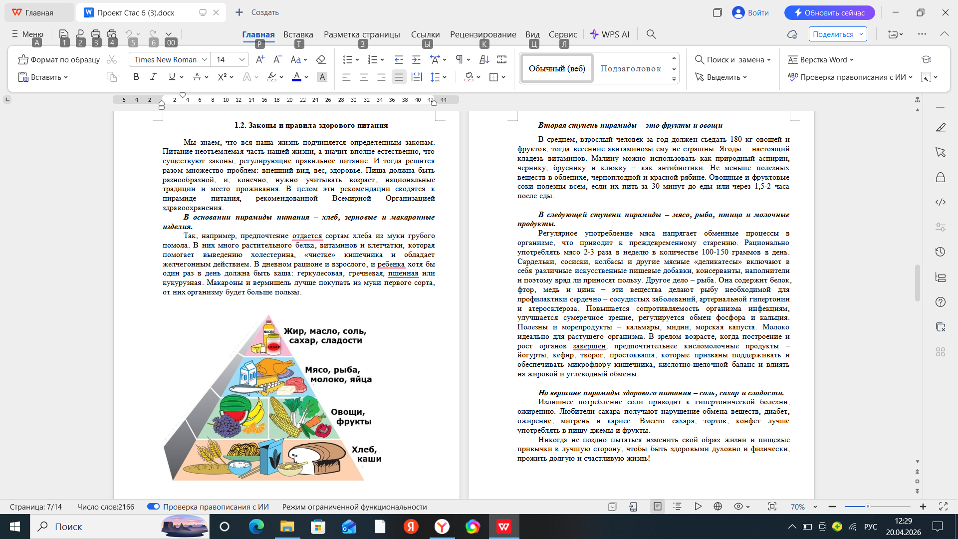 2.3. Рекомендации по здоровому питанию…………………………………….11