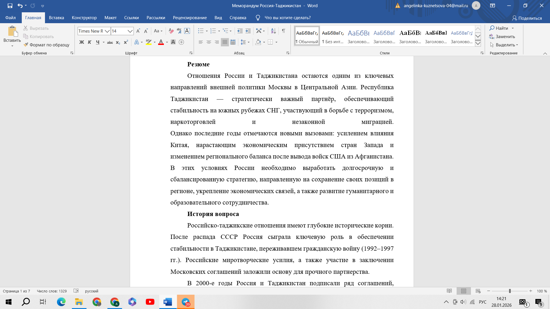 Меморандум Россия - Таджикистан. Понимание перспектив и прогнозирование отношений России и Таджикистана.