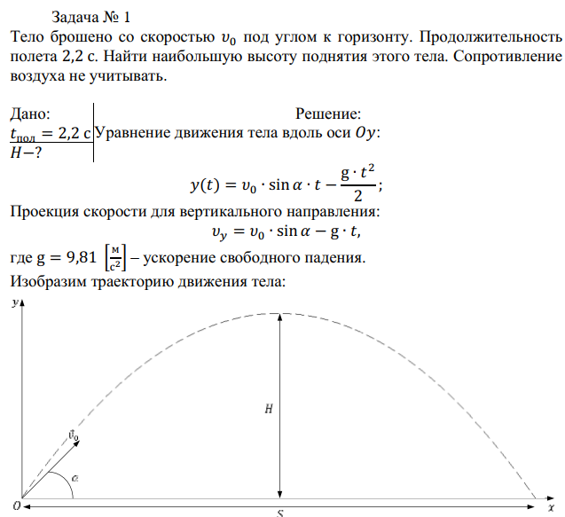 1. Тело брошено со скоростью V0 под углом к горизонту. Продолжительность