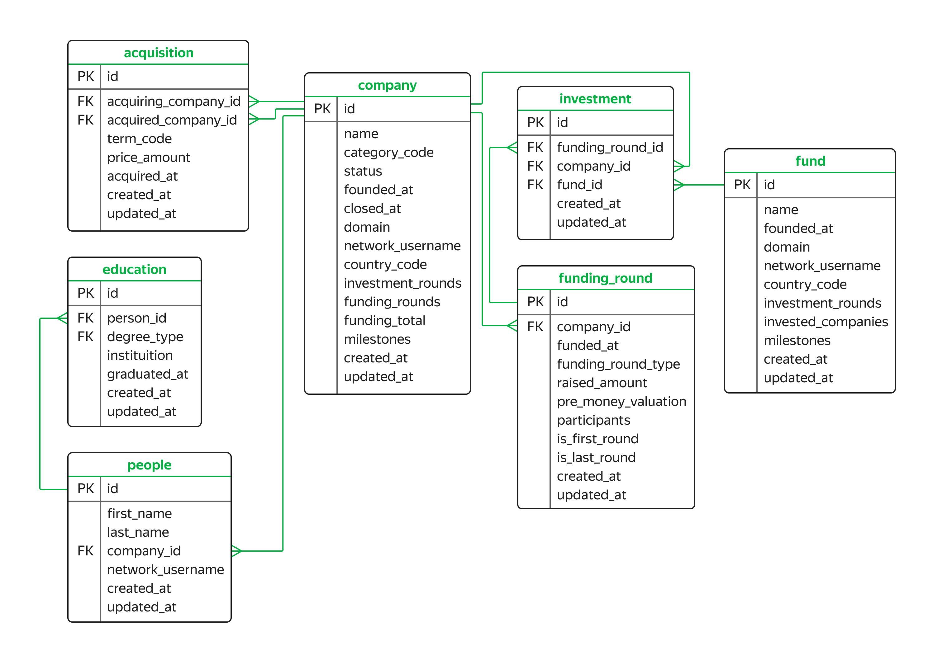 В проекте тебе нужно проанализировать данные о фондах и инвестициях и написать запросы к базе. Задания будут разные, но всё необходимое для их выполнения — операторы, функции, методы работы с базой — у тебя уже получилось узнать на спринте. К каждому заданию будет небольшая подсказка: она направит тебя в нужную сторону, но подробного плана действий не предложит.