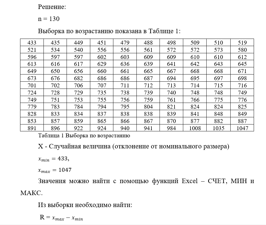 Выборка по возрастанию показана в Таблице 1:
