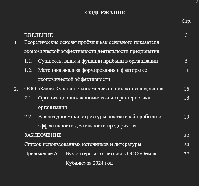 Тема: «Прибыль как основной показатель эффективности деятельности предприятия (на примере ООО «Земля Кубани»)».