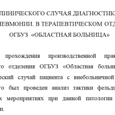 клинического случая пневмонии на базе терапевтического отделения ОГБУЗ