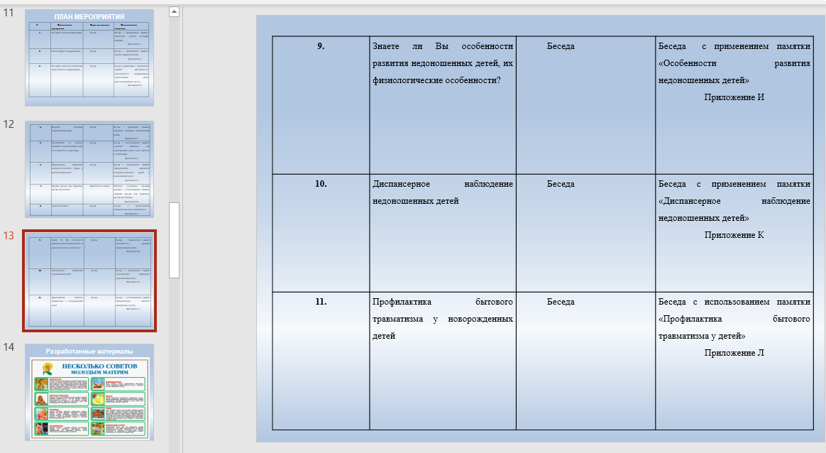 2.3 Мероприятия, проводимые участковой медицинской сестрой при уходе за недоношенным ребенком