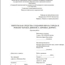 В данной курсовой работе исследуется роль эпитетов в создании образа города в романе Чарльза Диккенса "Крошка Доррит". Были выделены группы эпитетов по их роли в тексте, приведены цитаты из самого произведения.
