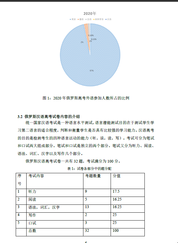 俄罗斯汉语高考试卷分析.................................................................................... 5