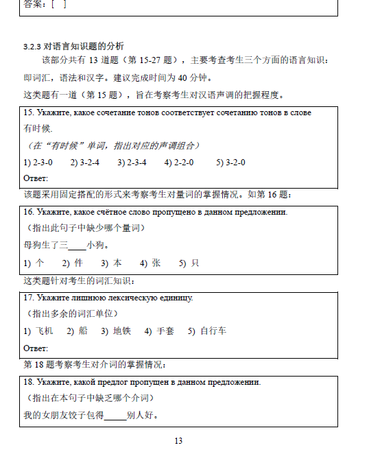 1. 总结分析俄罗斯高考汉语考试的特点、知识点;