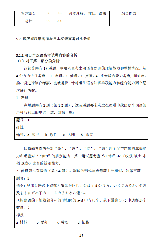 俄罗斯汉语高考与日本汉语高考对比分析............................................... 45