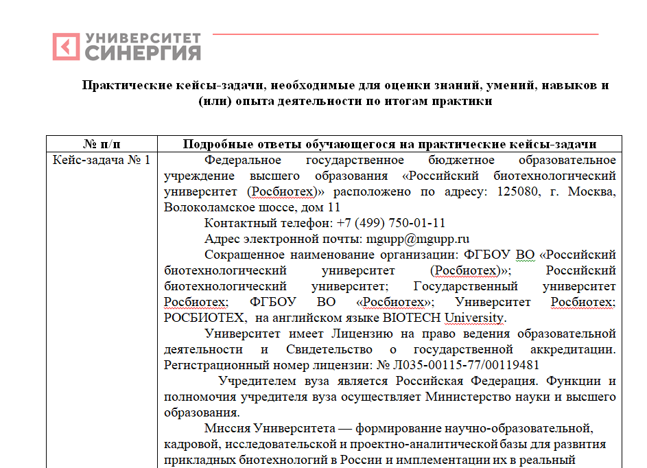 2. Выполнение определенных практических кейсов-задач, необходимых для оценки знаний, умений, навыков и (или) опыта деятельности по итогам учебной практики, ознакомительной практики.