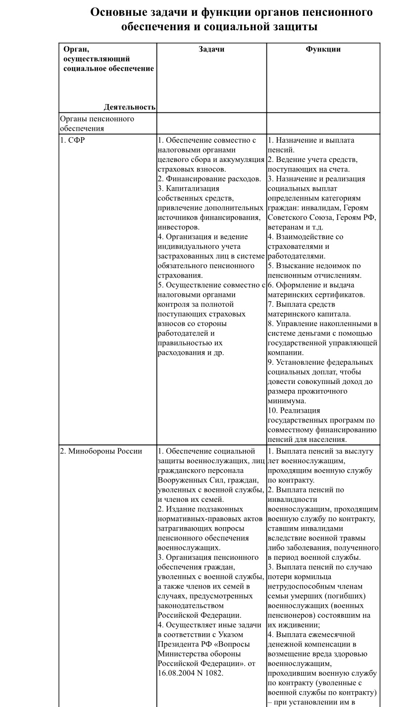 Органы, осуществляющие пенсионное обеспечение: