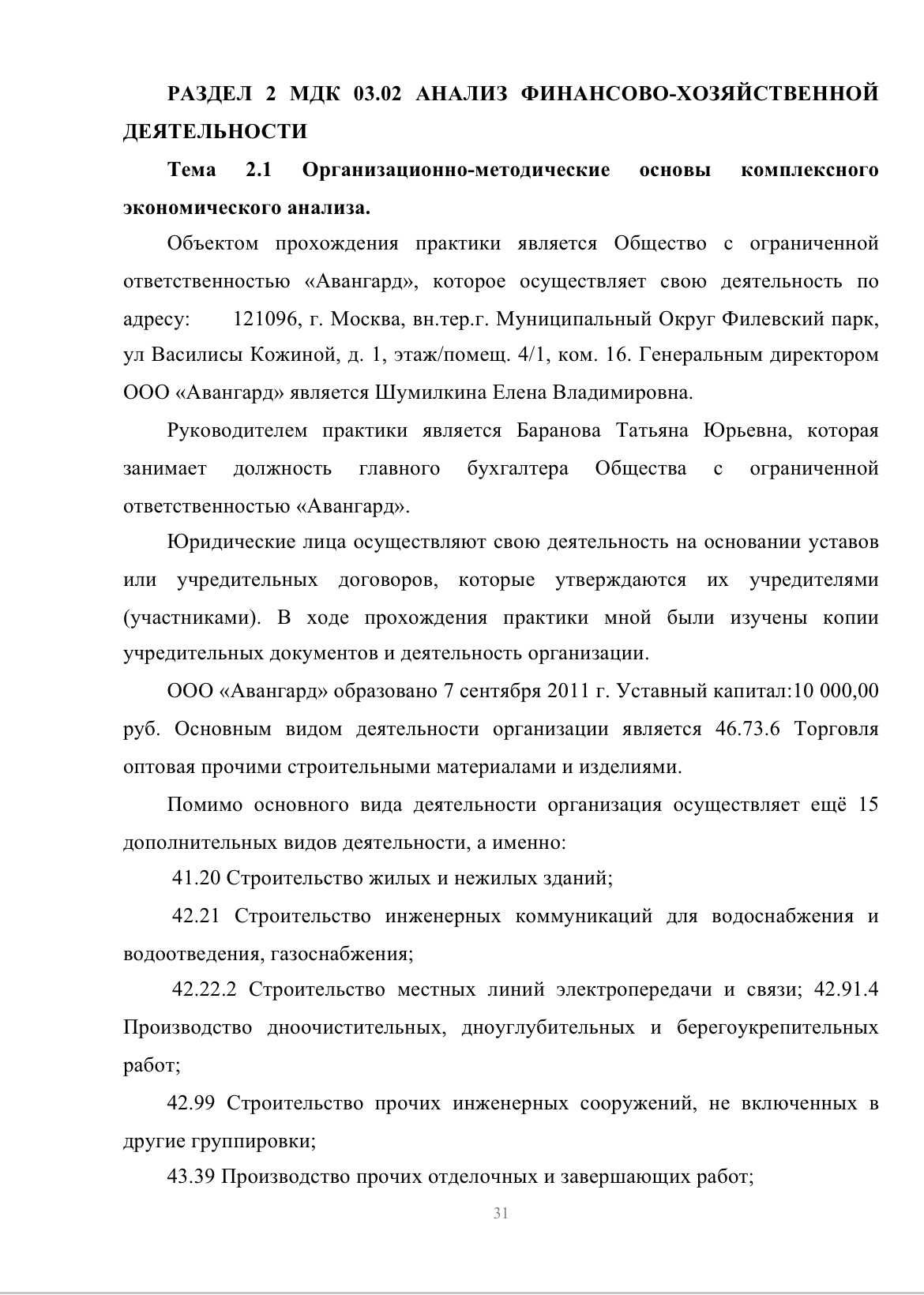 Мною была изучена бухгалтерская отчетность Общества с ограниченной ответственностью «Авангард» за период 2023 – 2024 г. (отчетность находится в Приложении).