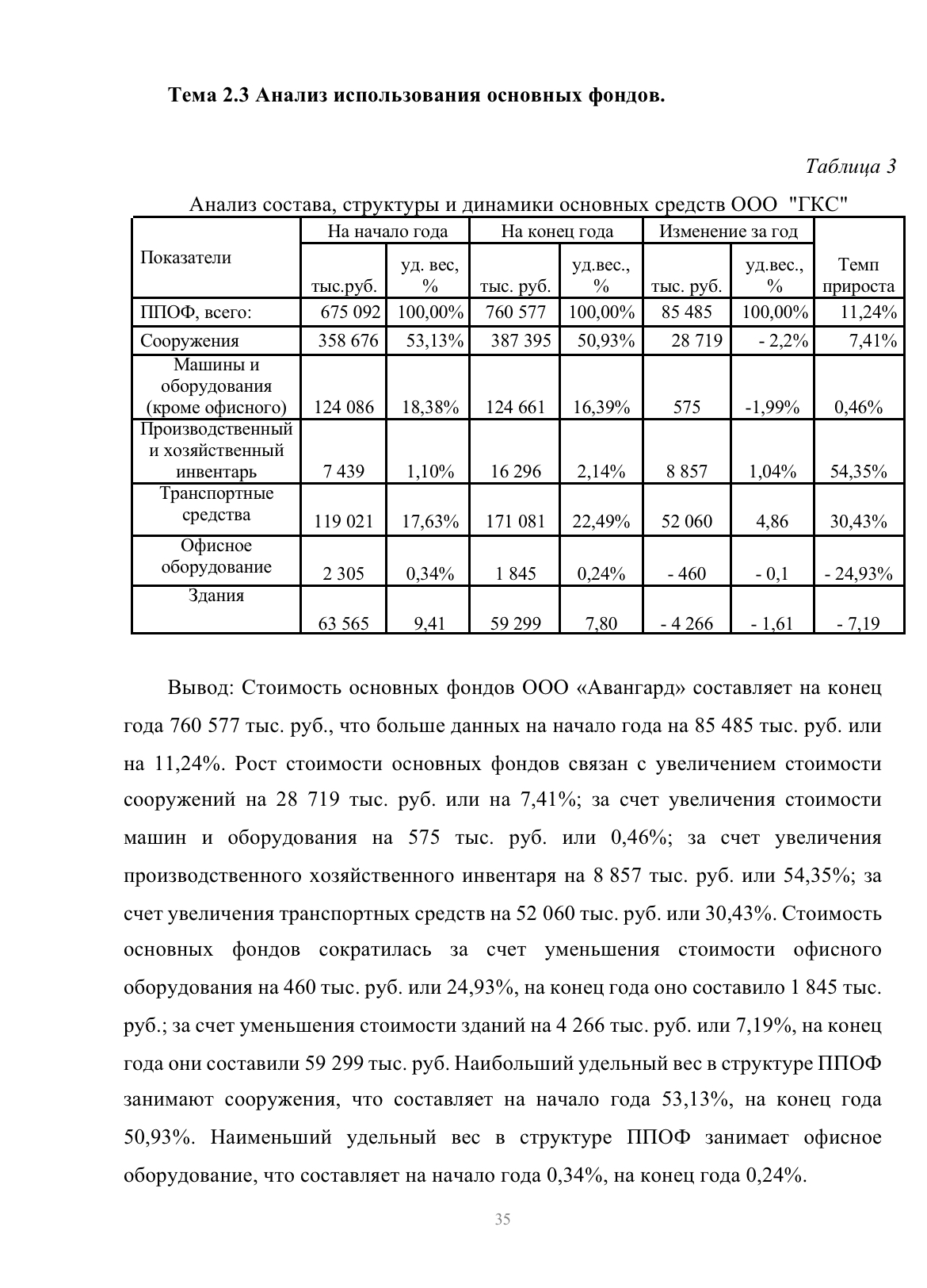 В ООО «Авангард» основные производственные фонды представлены в виде основных средств. Информация представлена на основании раздела I бухгалтерского баланса «Внеоборотные активы». Основные средства составляли: в 2022 году – 25 615 тыс. руб.; в 2023 году – 33 460 тыс. руб., в 2024 году – 29 393 тыс. рублей. По сравнению с 2022 годом основные средства увеличились на 1,15 %.