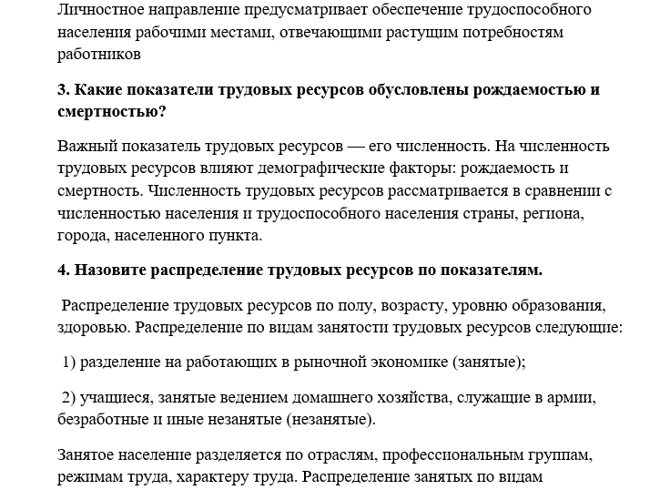 Какие показатели трудовых ресурсов обусловлены рождаемостью и