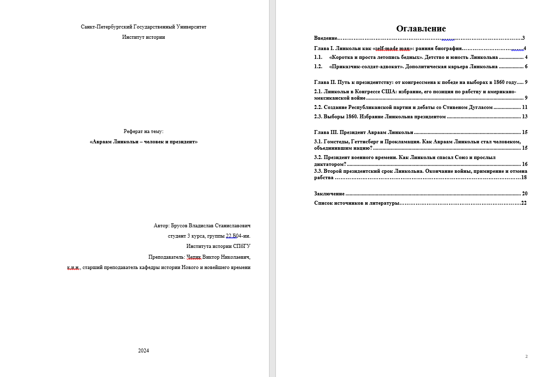 в данной работе будет рассмотрен именно что феномен Авраама Линкольна. В связи