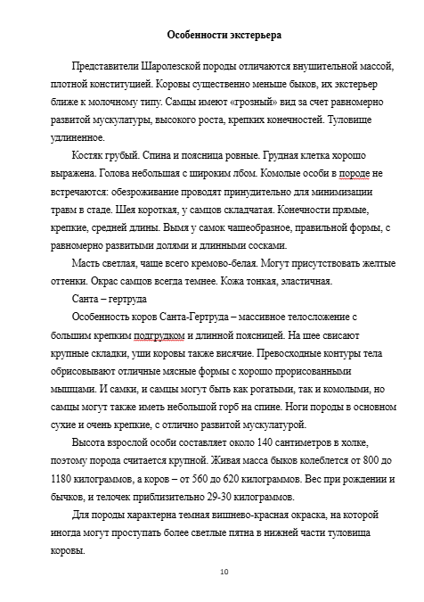 Представители Шаролезской породы отличаются внушительной массой, плотной конституцией. Коровы существенно меньше быков, их экстерьер ближе к молочному типу. Самцы имеют «грозный» вид за счет равномерно развитой мускулатуры, высокого роста, крепких конечностей. Туловище удлиненное.